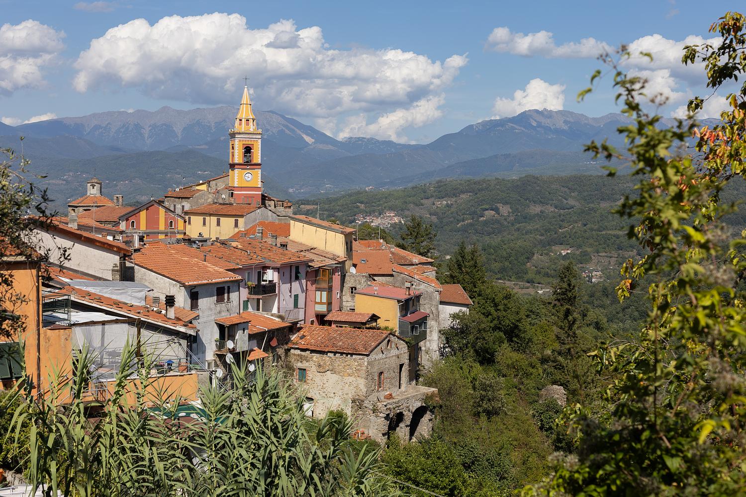 Golden walls, rosy rooftops, and nature all around – a little Italian town basking in the sweet late-afternoon light.